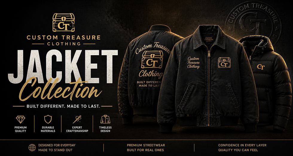 Custom Treasure Clothing delivers bold streetwear jackets designed for individuality and long-lasting quality. Elevate your wardrobe with premium outerwear built different.